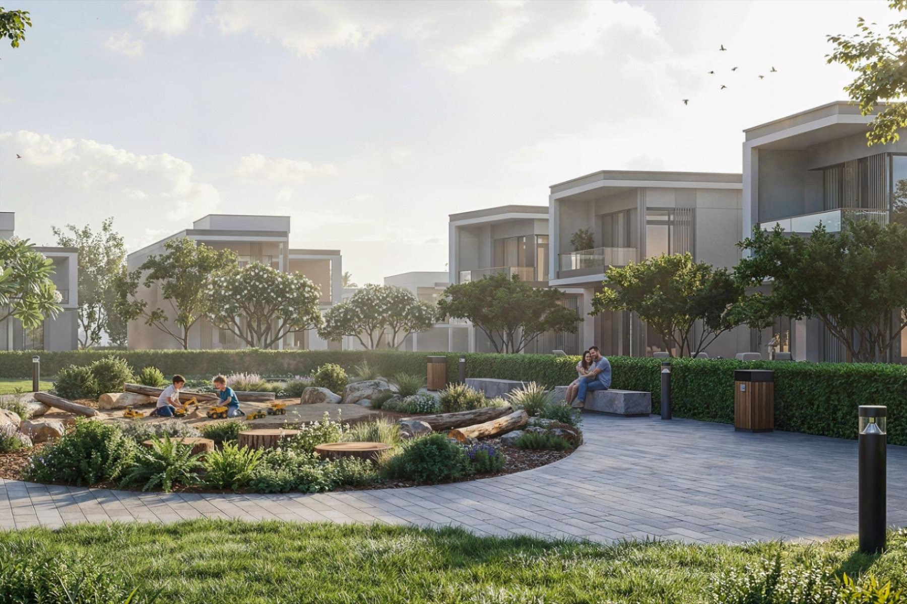 Sobha Sanctuary is a large, green-focused villa community designed for peaceful living. The masterplan includes wide open spaces, tree-lined paths, and water features spread across 38 million square feet. With parks, forest trails, and shaded walkways throughout, the community offers a quiet and natural environment for everyday life.