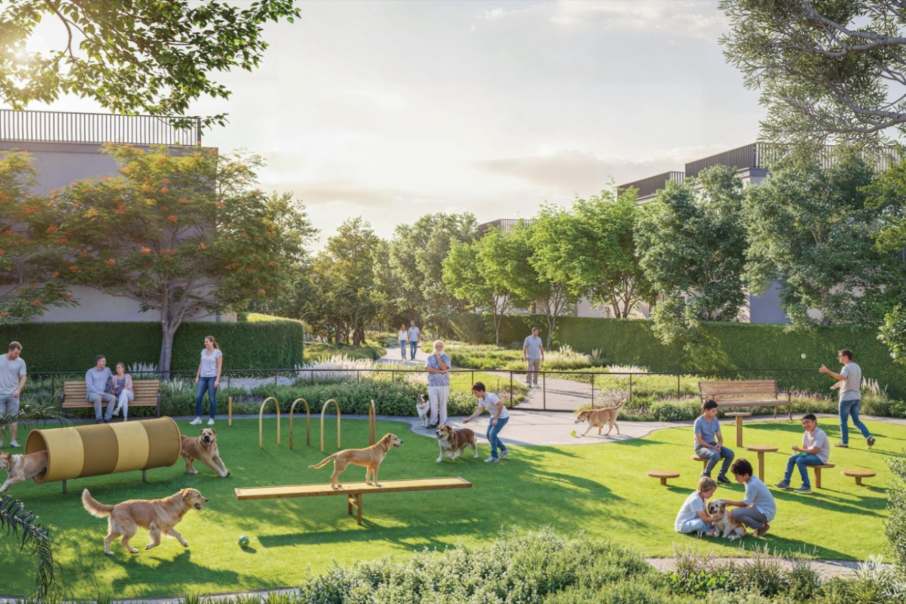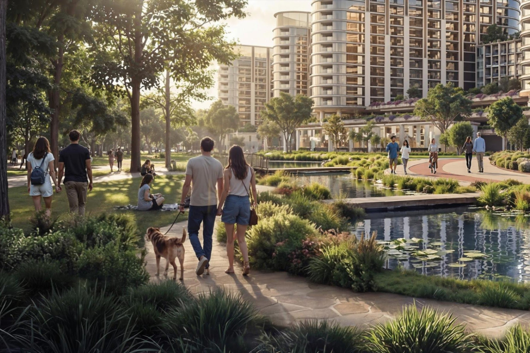 Shared amenities across the community include sports courts, outdoor gyms, kids’ play areas, zones for teens and seniors, and pet-friendly spaces. There are also forest trails, meditation areas, and green spaces. For daily needs, there are walkable retail areas and a community mall.